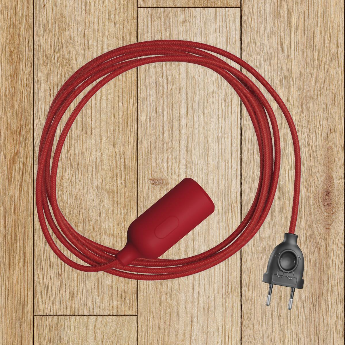 Fitting : 1X [KBS27SWRSS] Silicone E27 lamphouderset met schakelaar en verborgen kabelklemmen - Finish: Rood