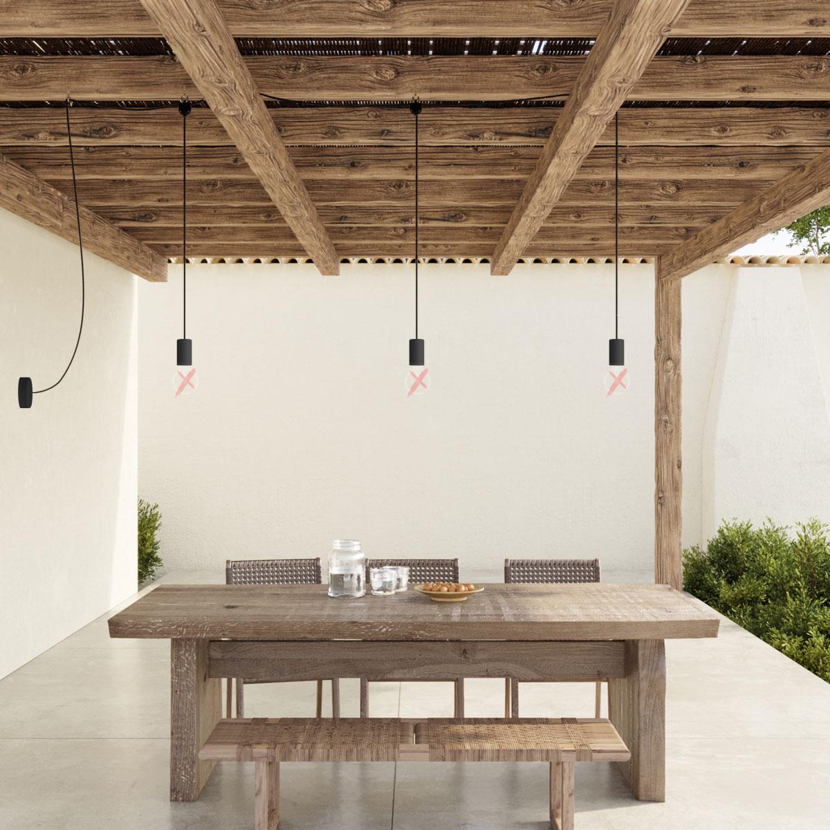 Douille: deuxième bras : 1X [KEIVAEL01BK] EIVA ELEGANT, kit douille d'extèrieur E27 IP65 en silicone - la première douille au monde IP65 qui peut-etre câblée - Finish: Noir