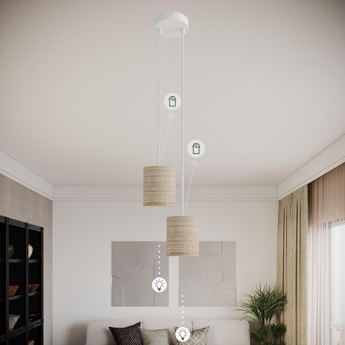 Abat-jour gauche : 1X [PARCIE27RNGC] Abat-jour Cilindro en tissu avec culot E27 - 100% Made in Italy - Finition: Natural Raffia