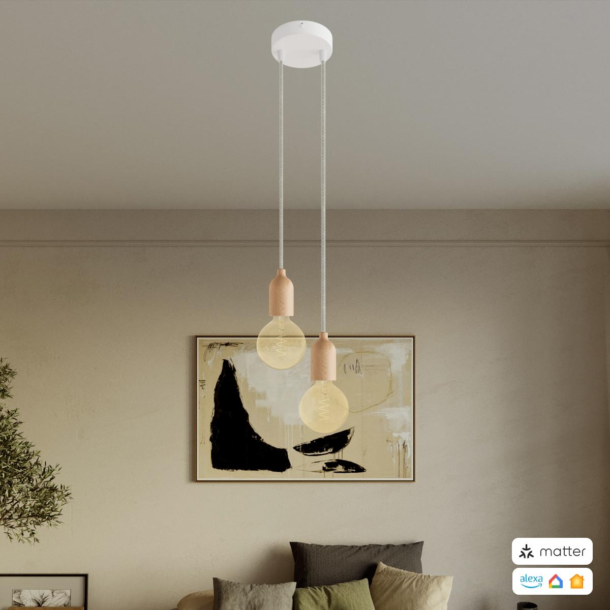 Left lamp holder : 1X [KBL1110] Wooden lamp holder E27 Kit with concealed cable clamp - Finish: Neutral