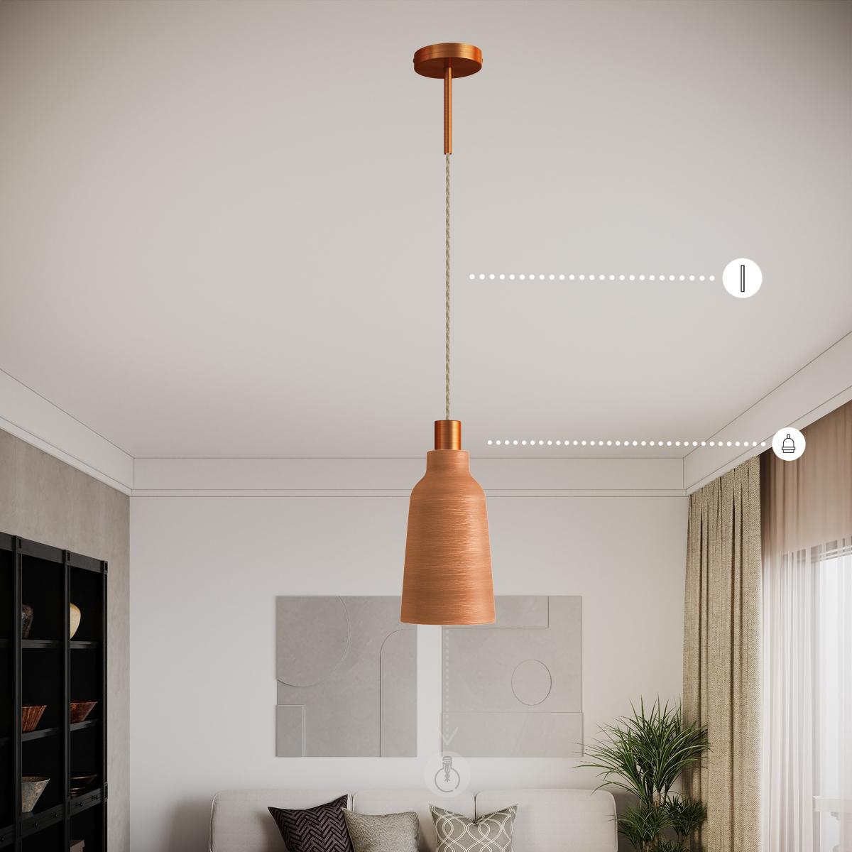 Portalampada : 1X [KBM4551RAS] Kit portalampada E27 semifilettato in metallo con serracavo nascosto - Finish: Brushed copper