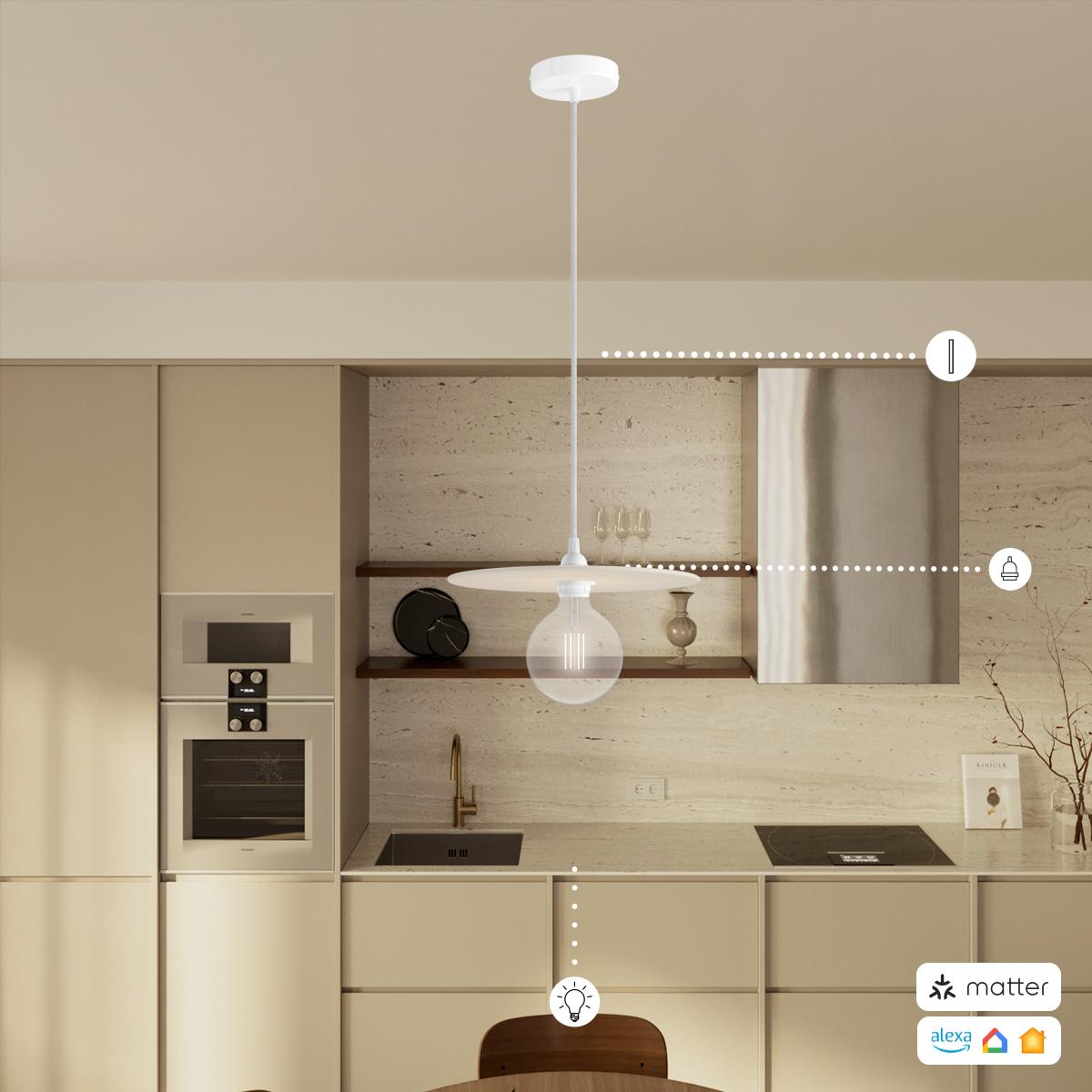 Plafondkap : 1X [WIFIKRM57FCVB] Strak design 1-gaats 120 mm. cilindrische metalen plafondkap - Cable clamp: Conical, Finish: Glossy white, Smart Home: Matter ON/OFF